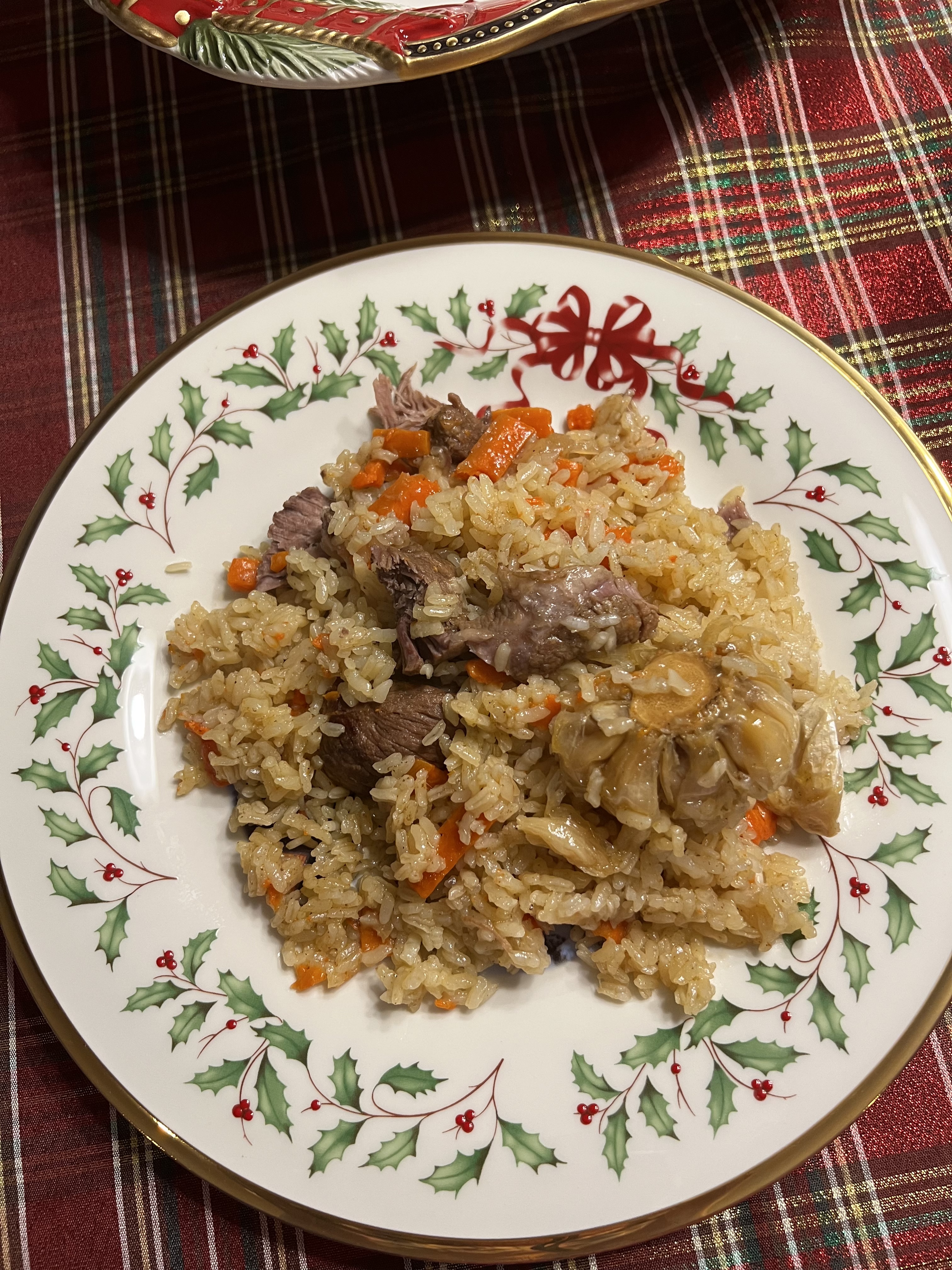 Спсаибо, девочки! Творожник еще и вкусный получился)) Never, какой шикарный торт!! Я тоже люблю с алкогольной добавкой)) Ну какой же я мастер))) Я не могу с уверенностью сказать, но пологаю что да - более рассыпчатые. Я всегда добавляю или то, или другое, в зависимости от рецепта. Nat, перестать развращать наши ряды ромовой бабой Какая красивая подача у Вас!! А дессерт!!! Я особо не люблю покупной дессерт, но этот выглядит очень аппетитно, особенно красный справа, ням-ням)) Хороший план на этот год у Вас! А я хочу только здоровья всем моим близким и себеJoan, слюни текут от Ваших мант. Я очень люблю манты - вообще все мучное - но вот боюсь делать - ни разу не пробовала. Попробую Ваш рецепт. И еще я люблю тыкву и все, что с ней связано. Maribella испытывает наше терпение RIA, ох аппетитный блин!! Мы с мужем очень любим блины. Все, делаю блины на этой неделе! А плов у меня получился отменный, должна признаться)) Хотя переживала из-за риса и баранины, так как не было длинного, и использовала круглый. Я тоже обычно из длинного готовлю. Мясо тает во рту, а рис получился рисинка к рисинке. Рецепт дала племянница. У нее муж мусульманин и она делает отличный плов. Кому надо, пишите. Очень простой рецепт. А из наших американских продуктов, вообще легко. Второе фото поближе, сегодня с работы на обеде. Вчера готовила.