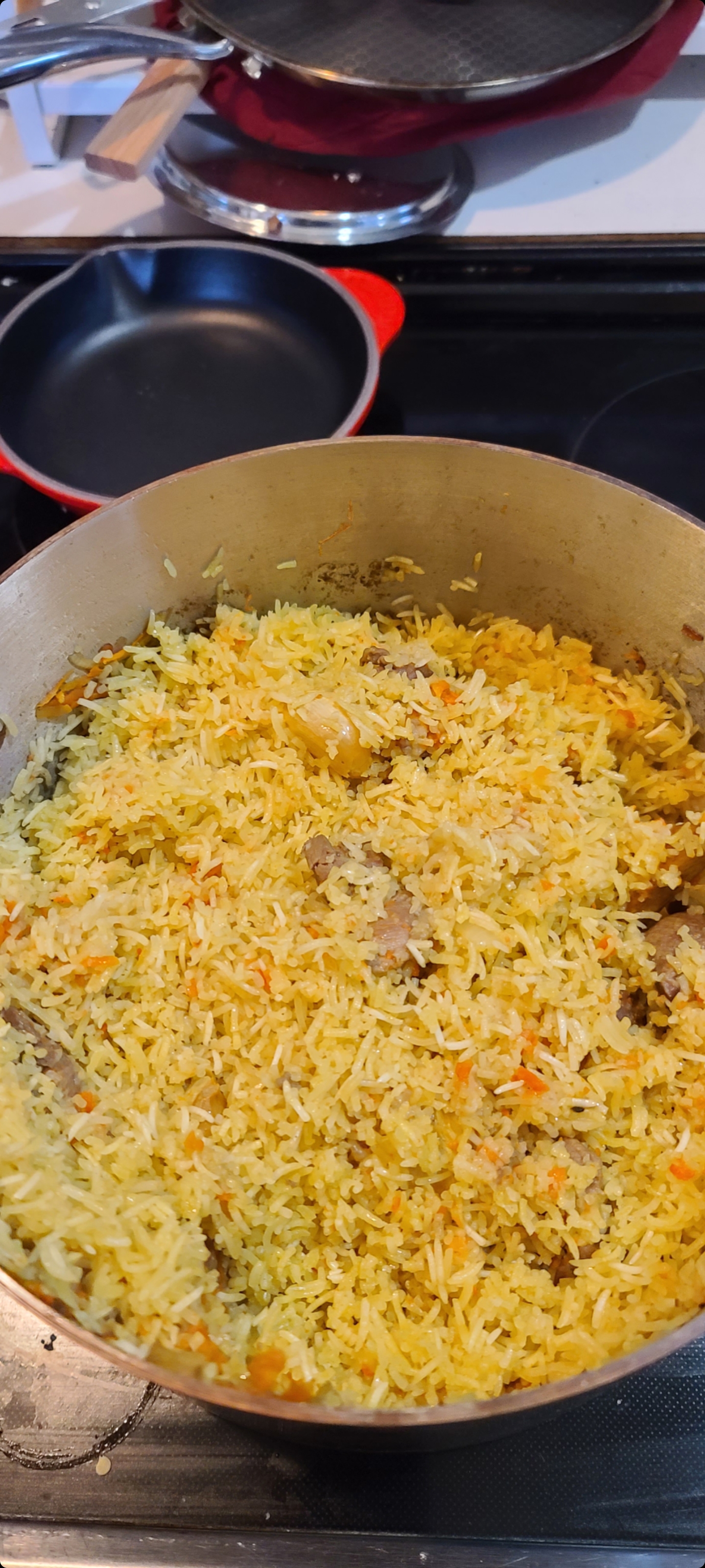 Плов у меня из риса неферганской долины, и даже не гималайский жасмин. использовала какие были остатки мяса в холодильнике плюс баранины добавила. получилось на удивление вкусно. пока готовила думала фигня получится.