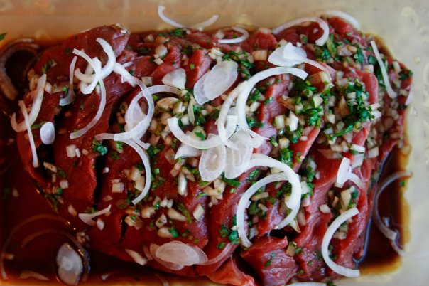 Решила поделиться рецептом говядины... Усилий минимум, а получается эффектно, как будто часами у плиты корячились... Понадобится: примерно килограм говядины - филе 2 средних луковицы пучок кинзы четверть стакана соевого соуса ( можно половину если любите посолонее) четверть стакана красного вина ( сладкого)