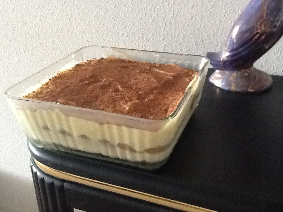 tolko chto sdelala Tiramisy....postavila v xolodilnik na 5 chasov! posmotrim chto polychitsa! ochen bustro i legko delat,a desert obaldennui!!!! Maskarpone kypila v Walmart banochka 225gr-3,48$...finger lady 2 ypakovki po 2,54$....cacao-2,39$....voobsem minimym zatrat i xlopot, a desert  !!!