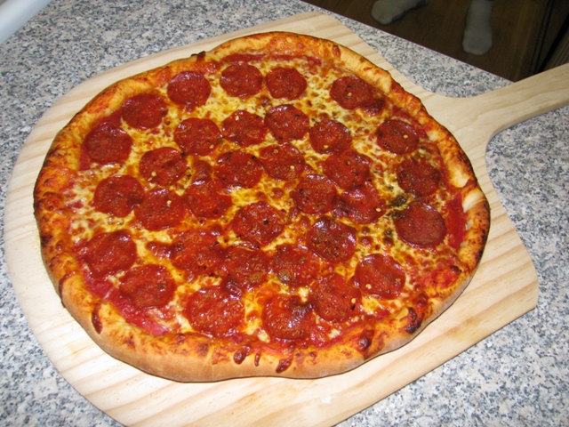 HELENKA, я делаю пиццу! мне на крисмас надарили всяких прибамбас для пиццы - камень, лопатку и резец, так что пришлось учится самый первый раз мне сестра ин ло показывала, спасибо ей огромное за это,а то бы я никогда не додумалась как ету пиццу с этой лопаты кидать в духовку на разогретый камень )))))) рецепт тоже самый простой - дрожжевое тесто (мука, вода, соль, сахар, ну я еще яйцо добавляю и масло оливковое немножко) самое главное в пицце - это правильный соус и вообще правильные ингредиенты. мы пока в РФ жили мне муж на простом лаваше такую пиццу делал, я поверить не могла что так вкусно бывает ))))) ща я фотки запощу, раз такая возможность пиццей похвастаться  но это моя самая первая пицца самостоятельная, я потом их круглее научилась делать )))))