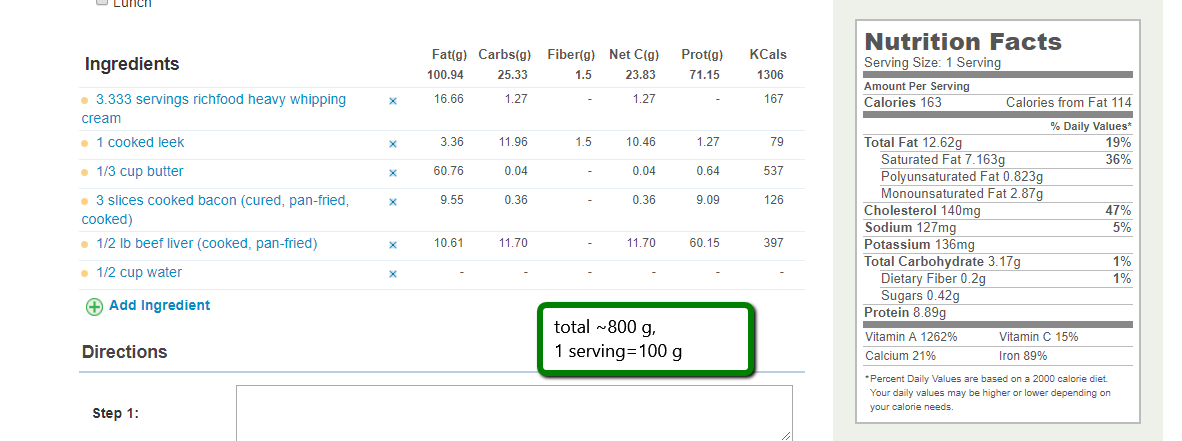 В моей версии порцию считаю 100 г, для этого количества мои макросы и брейкдаун.