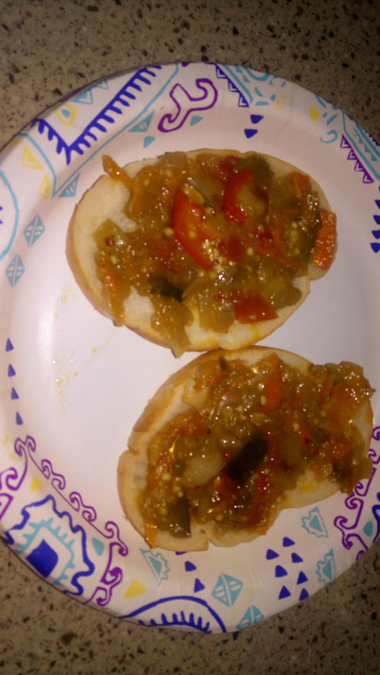 На обед доела,что было . Бутерброды с холодной овощной икрой просто незабываемые.