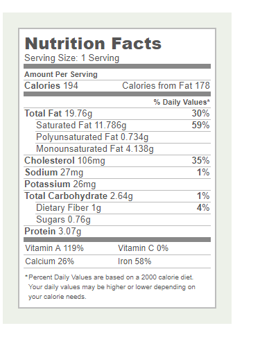 сдела этот хлебец - спасибо за рецепт! Вложение: Quick bread 2.JPG Даю также разбивку по КБЖУ Калорий - 321 Жир - 28,07 Карбов - 7,74 Клетчатка - 3,2 Чистых карбов - 4,53 Протеин - 12,8 Очень калорийный, так что особо много не сьешь. Хороший источник железа, кальция, ну и яйцо пригодится. Большой плюс что быстро готовится - я ставила на 2 минуты в большой чашке для кофе.