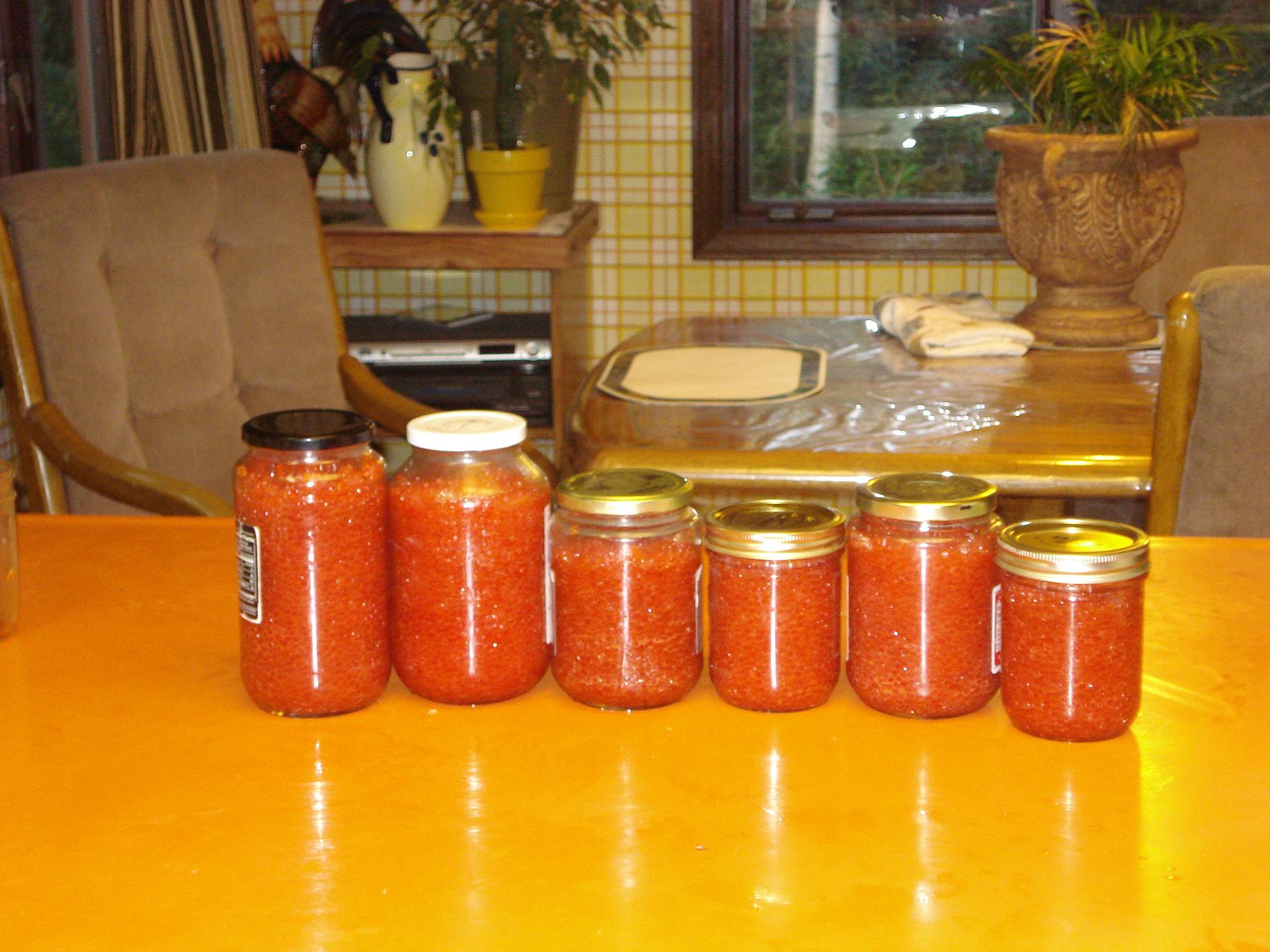 lana7b писал(а): Abigail ааааа,я в обмороке!!!  Черной нет, а вот красная.... Ето несколько баночек после одной рыбалки, а мyжики мои каждую неделю с удочками бегали. Так что я сырую икру уже просто раздавала или курам скармливала. Приготовить икру - ето морока, а вот сьедается она быстро. Но мы в сентябре наедаемся надолго, для имунитета омега3 в икре самое то. Так что приезжаейте- и красоту посмотрите, и рыбы наловите, и икры наделаете.