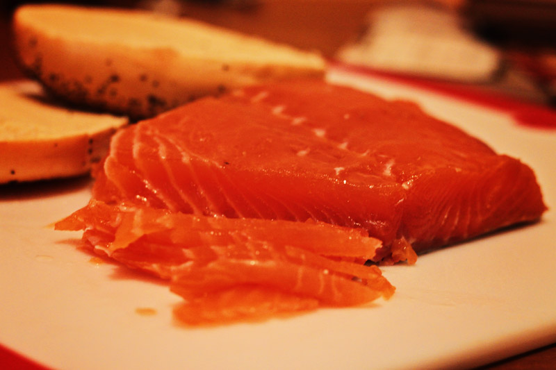 user[f] писал(а): Я использую только морскую соль ею практически невозможно пересолить, зато все микробы убиваются напрочь.  не могу пройти мимо дезинформации... Неважно, какая соль, она всего-лишь консервант. Если вы засолили зараженную рыбу - она ею и останется... только подольше. Убивает микробы глубокая заморозка. Поэтому охлажденная рыба - больше риска и дороже По поводу засолки: Много отходов соли и нужно разделывать перед едой - не удобно. Я режу на тонкие кусочки толщиной 1-2 мл еще сырую и без кожи (лучше полузамороженную - легче с ней работать). Укладываю в контейнер послойно, пересыпая солью (тоже морскую использую) на глазок (отрабатывается на опыте по вкусу) ровно столько, сколько надо и тогда не важно сколько времени стоит, хотя можно есть уже через пару часов.. Также слегка смазываю слои растительным маслом слегка кисточкой для барбекю, если рыба сама не жирная. Здесь - все лосось, хотя, нежирная рыба, скорее всего, кета или горбуша, жирная - семга, форель. Сахар ничего не дает кроме дополнительных калорий: раньше использовала тоже, теперь нет - не вижу разницы. И уж верх кощунства: сдабривать лосось какими бы то ни было травами/фруктами... Запах свежего лосося перебивать - зачем?.. Если только уж очень не нравится запах рыбы или она хоть и свежая, но имеет посторонний запах, то... для рыбы нет ничего лучше кориандра и черного перца или обоих вместе. Я солю рыбу сама еще с России, а здесь и американского БФ на нее подсадила