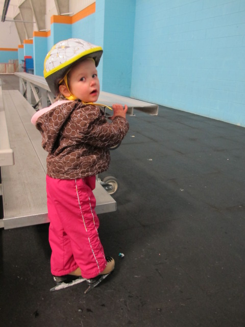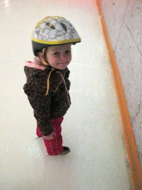 Марин, я вожу на коньки с 2.7. Три ей только в апреле, но она уже стояла на коньках и маршировала, но не катилась. Тренерша сказала что уже можно и мы решили начать классы. Ей очень нравится. У кого не очень получается -тому выдают такие "walkers", как у бабулек  Прикольно так, но им помогает. Моё ничего общего не захотело иметь с walkers, только сама. НО, я согласна с Зарой-три это РАНО. Моей хоть и нравится, но я как мама думаю что лучше-ближе к 5. Во первых, я думаю что для нормальной поддержки нужно побольше "мяска" наростить. Моё только 26 паундов. Во вторых-группы- от 3-5 лет. Координация и физические способности пятилетнего ребёнка лучше чем 3-х летнего. все равно не перейдёте на следующий уровень пока это не пройдёте этот. То есть можете пару лет потрать вместо года, если бы начали позже. Это моё субъективное мнение. Извиняюсь за качество фоток с телефона