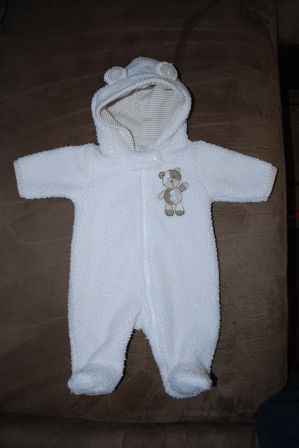 al.ginger писал(а): Всем привет! Я пожалуй самая пузатая буду - 36 недель. У меня такой ступор - во что малого одевать, когда родится??? ПДР 20 апреля, а живем в Минессоте (где погода как климакс, то тепло, то снега навалит, то ветер задует). А еще есть муж, который неадекват и говорит, что маленькому ничего не надо. Я уже устала объяснять, что "сам-то ты в куртке, а у маленького теплорегуляция еще хуже твоей... его потеплее надо одеть". Нет. Мне твердят, что я расточительница  и хочу пошопиться только. А у нас одежды: одеяло, слипик, 5 бодиков с короткими рукавами, 3 шапочки и 3 пары носочков. Ну и пеленки еще. Ну не капец ли? Если у вас будет ещё холодно в ваше дью дейт могу выслать комбинзончик размер NB (безвозмездно).Доче своей я его одевала пару раз всего.Сейчас у меня дью дейт летом,а комбинзончик зимний как бы.Я просто все вещи дочкины раздала уже,а вот этот один остался только.Никого из знакомых нет кто бы в ближайшим 2 месяца рожал бы. Фотку ставлю.Адрес в личку отправьте.Мне завтра на почту как раз надо сразу бы и отправила бы.