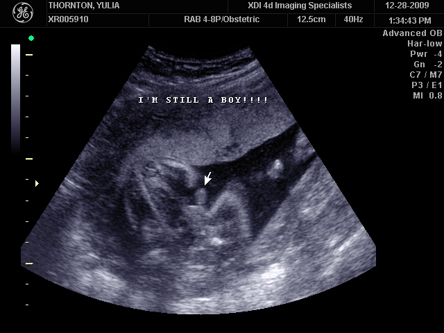 Ну ладно, тогда и я нашего писюна покажу  Надеюсь, Джеффри на меня не обидится Вот это в 23 недели: (там оборудование переключалось из режима 3Д в обычный 2Д)