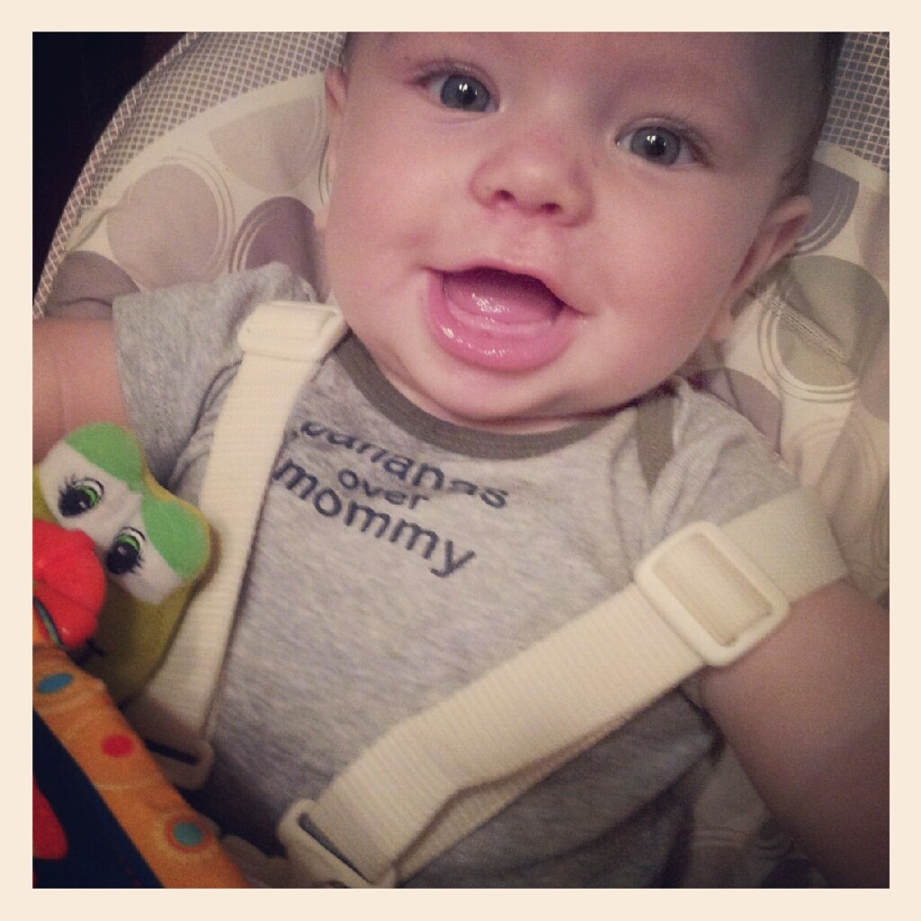 Девочки  ,мы вот снова пропали,то раньше от приезда мамы отходили=))),так теперь я учится надумала и большую часть с мелким и подготовкой в коледжу занимаюсь..=) Ой..я даже представить не могла ,что это так сложно daycare найти для рёбанка до года,я как погрузилась во всё это,думала голова пухнуть начнёт  ! Ели нашла , из около 50 звонков только трое были авилабл,страшно мелкого там оставлять,но вот стараюсьна на это с позитивной стороны смотреть,что у неё группа меленькая 5-6 детей,а не 10-14 как в обычных ито,что для Саши будет больше общения с детками  ! И ещё радует,что не смотря на то,что я фул тайм учится буду, я его всего два дня в неделю буду там оставлять=),с рассписанием мне подфортило!=)) И ещё мы растём,через два дня 6-ть месяцев,аж неверится,что время так летит,мы всё так же спим всю ночь ТТТТТ..переворачиваемся во всю уже,на животик, стал спать на животике или на бочку,чтото ползти пытается,но всё равно ещё как червячёк,а из за того что не получается плакать начинает=)))! Прикорм во всю вводим,уже бананы ,яблоки и груши едим (как взрослые) ,а вот от морковки он отказался,чёто она ему не понравилась=) Скоро на 6-ти месячный чекап,посмотрим какой он у меня=)))моё предположение,что он 18-20 паундов-кабанчик вообщем=))))! Девочки а как у вас с зубками было,вроде он к 6-ти месяцев должны уже вылазить?! или я может рано паникую?! Вот какие мы сейчас