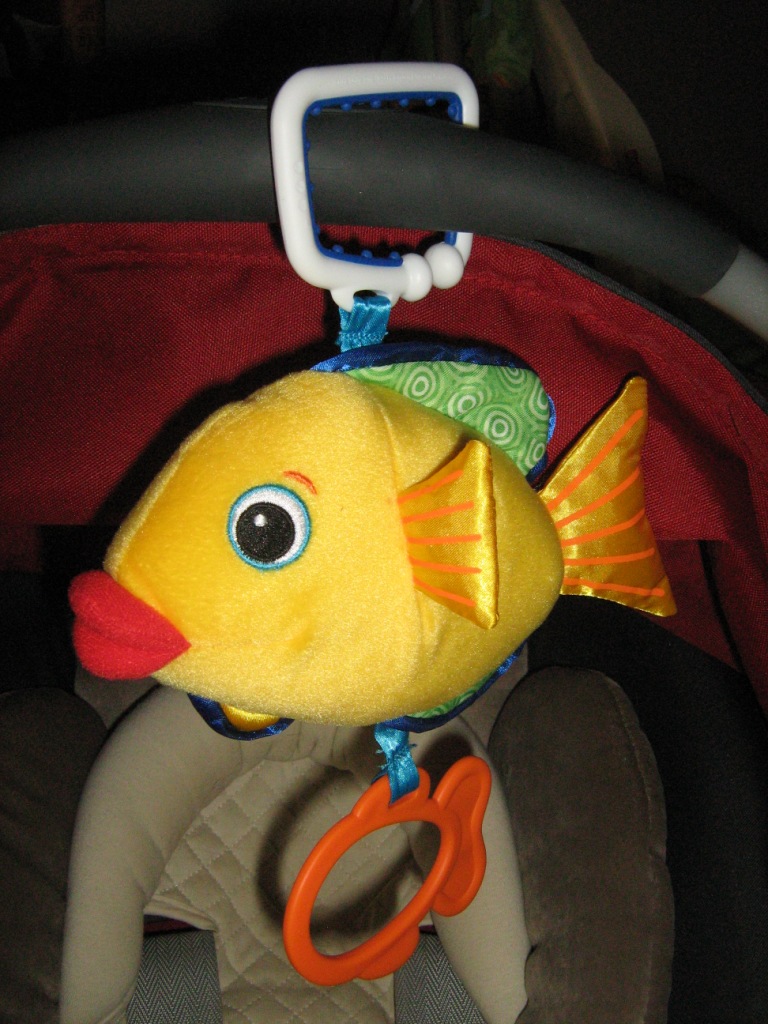 Penelopy писал(а): Sweetheart75, у меня сыночек тоже левой рукой больше работает: и кулак в рот левый и по игрухе стучит левой рукой. Но мой еще не хватает ничего. Я его достала уже, по-моему: сую ему все подряд  А какие ты купила, чтобы было удобно хватать? Покажи, может, у меня еще нет таких  Пенелопик, да обычная погремушка с колечком потоньше, а то у нас другие игрушки для хватания не очень удобные. Так он у меня сегодня вошел в раж: схватил эту погремушку (кстатит, все-таки правой) и игрался с ней, не отпускал минут 15 - я его уже и подняла, и на руках поносила, а он все не отпускал  Еще сегодня держался за колечко на рыбке, которая к ручке крсита привешена (за это колечко дернешь, а там музыка играет) - так уцепился, выглядело так как будто он в общественном транспорте за ручку ввверху держится Вот рыбку зафотографировала: