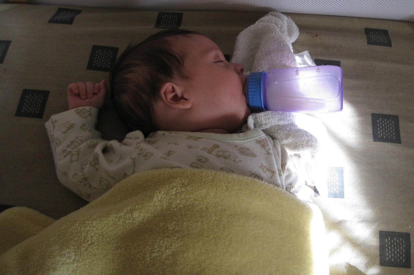 Merisa писал(а): lena 45 писал(а): Merisa писал(а): Девочки а во сколько ребенок начинает бутылку держать и самостоятельно есть из нее? Держать и есть, наверное, месяцев с 6, а самостоятельно есть с рождения можно, мои с недельного возраста сами кушают я бутылочки на мягкие простынки кладу, но бутылочки герберовские, авентовские так не положишь. Лена какие они у Вас молодцы! А куда Вы бутылочку кладете на грудь ребенка или сбоку? Моя так крутит голову что куда не клади она потеряет бутылку, поэтому я и грудью не кормлю. На бок все время кладу, на полотенца или мягкие простынки. Они если голодные, то не будут выплевывать головой крутить, единстеное, они руками могли махать и я их пеленала, до сих пор когда кормятся, пеленаю, потому что руками машут. Но, здесь еще многое от бутылки зависит, герберовские бутылки ребристые и оч легкие посравнению с авентовскими, очень удобно кормить.