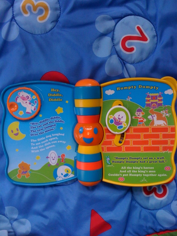 Насчёт книги, то нам её подарили. Она пластмассовая, с пластмас страницами. На страничках всякие штуки, которые можно двигать и тогда разный текст читает. о, щас фотку выложу.