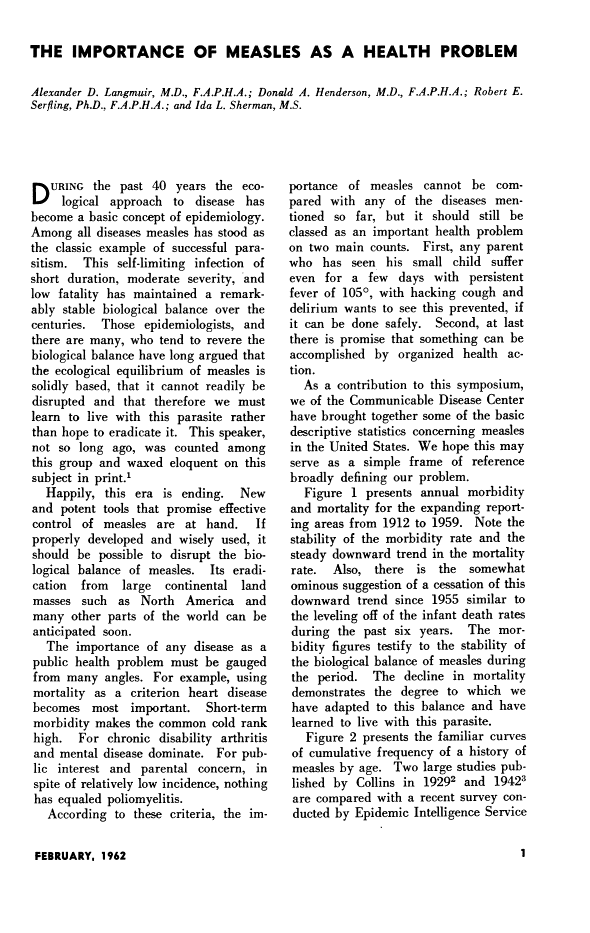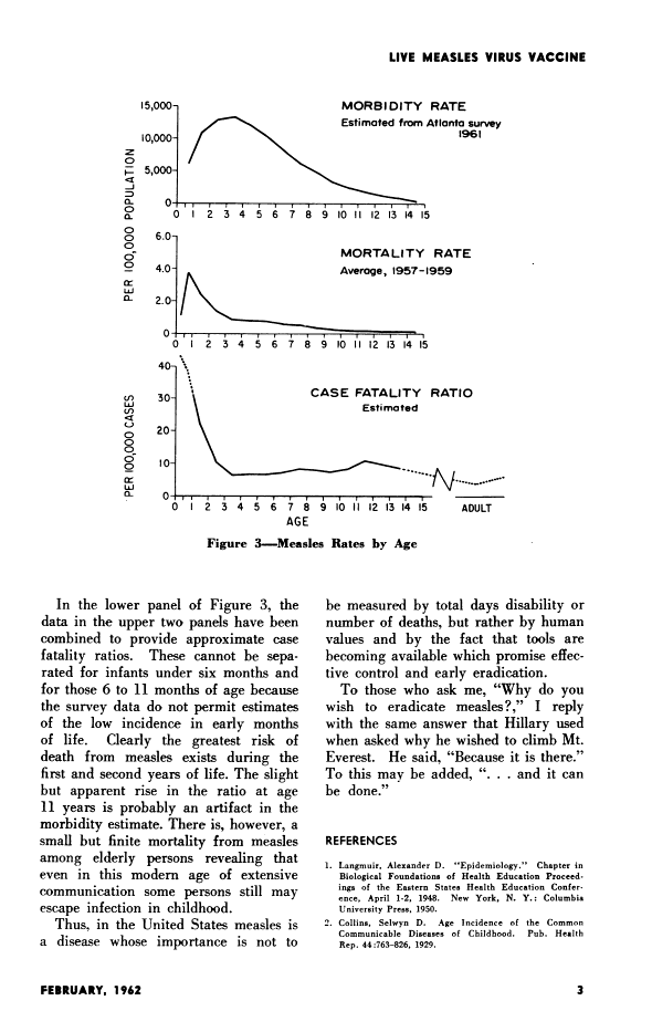 Conclusions: The apparent paradox is that as measles immunization rates rise to high levels in a population, measles becomes a disease of immunized persons. Because of the failure rate of the vaccine and the unique transmissibility of the measles virus, the currently available measles vaccine, used in a single-dose strategy, is unlikely to completely eliminate measles. The long-term success of a two-dose strategy to eliminate measles remains to be determined.