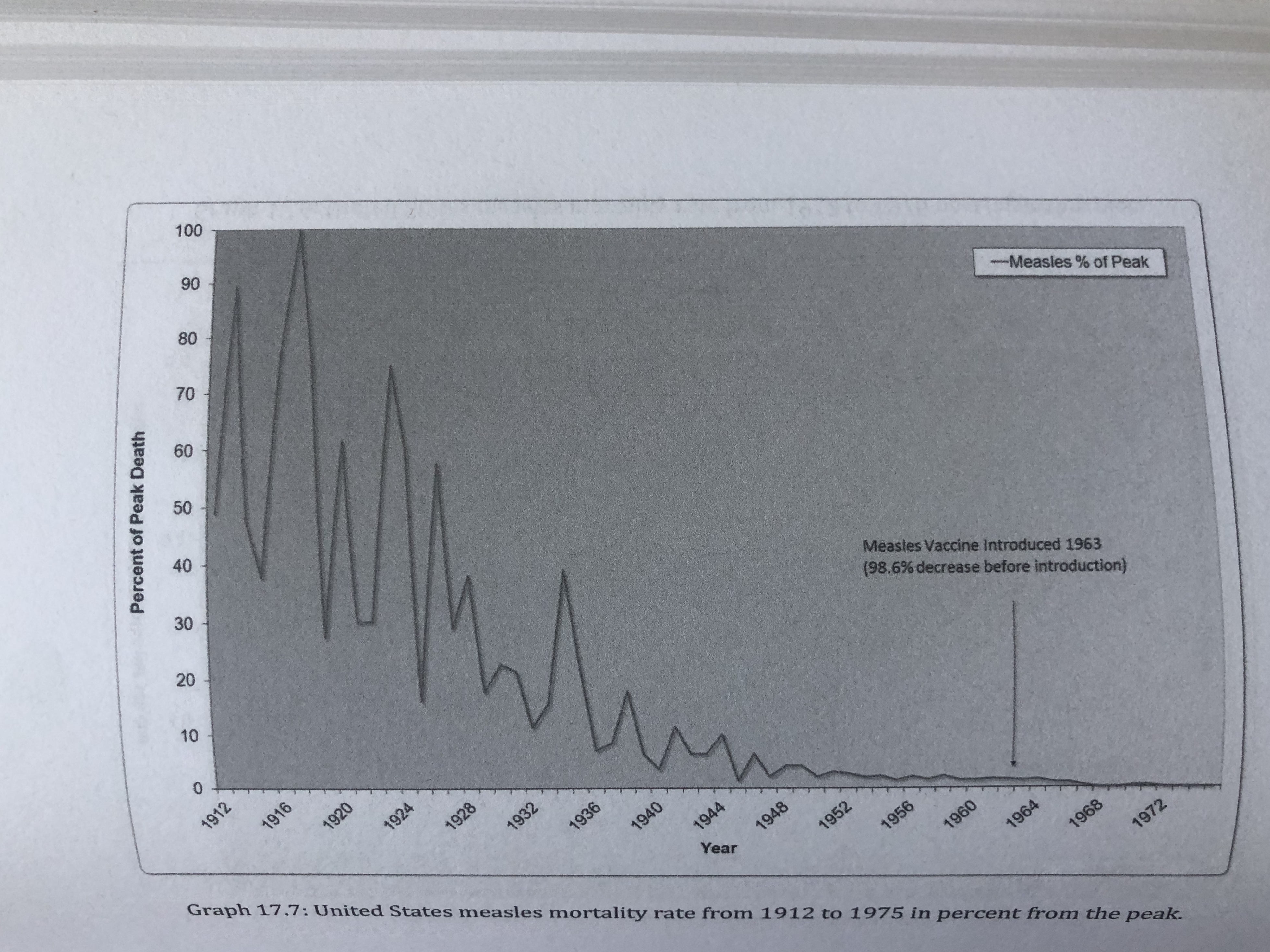 Вот эта самая история и показывает, что причиной того, что заболевание исчезло, были не прививки; причиной того, что заболевание исчезло, была изоляция [пациентов] и улучшение санитарных условий. Когда в этом городе кто-то заболевал натуральной оспой, его отделяли от остальных, семью просили держать пациента дома, в комнате, и за ним ухаживали специальные люди, обычно те, кто уже переболел этой болезнью и был к ней невосприимчив. Выполнение этих простых правил привело к резкому снижению заболеваемости.