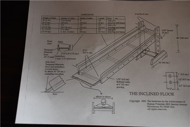 Вот такую горку можно сделать по схемe, данной в институте Глена Домана на курсах по развитию детей.