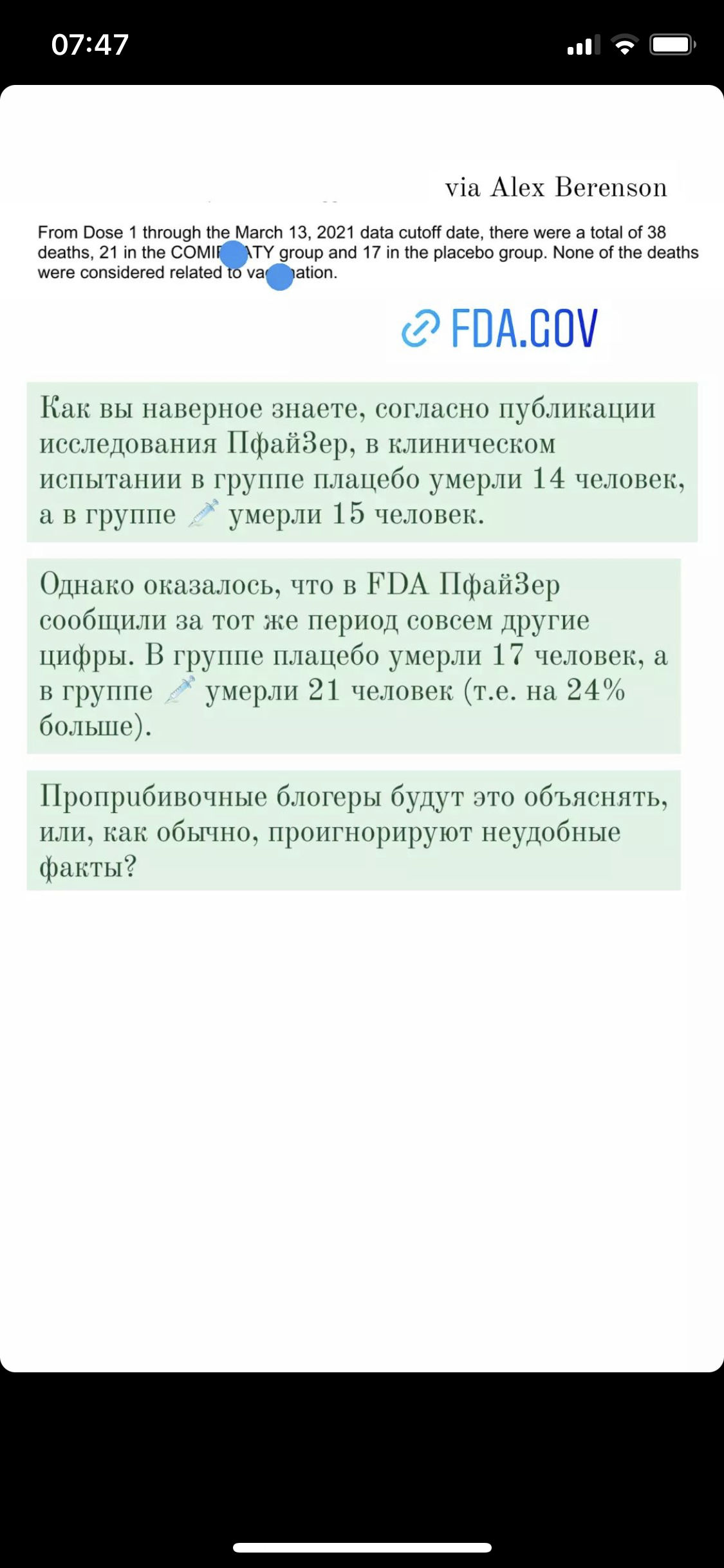 Вы же понимаете, что те кто едут за вакцинами из России в Европу, они же и ориентированные там жить, там учатся их дети, там у них недвижимость. И даже отдых. Вы представляете себе отдых со Спутником, когда нужно сдавать PCR тесты каждые три дня, что бы попасть в музей, ресторан, на любую экскурсию, при Этом платить 60 euros за каждого члена семьи и так каждые три дня. Я это наблюдала За семьей моей двоюродной сестры, когда мы встречались в Европе.[/quote] Вы, как всегда, пишете совсем не о том, лишь бы поспорить. Разумеется, Спутник не ставят те, кто постоянно живет в Европе или Америке. А если ты живешь и работаешь в России, то глупо ставить западную прививку, а потом не иметь возможности полноценно жить и работать. Никто не заставляет ехать в отпуск в те страны, которые Спутник не принимают, вполне можно потерпеть год-другой или посетить пока другие. Для меня выбор посещение музея vs здоровье не стоит. Но в любом случае я бы предпочла платить за тесты, чем ставить ненужную прививку. У молодежи, понятно, свои критерии. Надеюсь, что ситуация все же разрешится в ближайшее время.[/quote] Полно живут на две страны именно живут, другая проблема, вот не доверяют эффективности Спутника, но при этом хотят провакцинироваться от Ковида, и жить Полноценной жизнью и ездить куда хотят. А из за самодурства властей должны выкручивается и покупать коды. Не все работодатели требуют вакцины в России, Или проверяют подлинность вакцинации при входе в ЦУМ или в какой то там торговый центр с заоблачными ценами. Экономика России с этими кодами просто кирдыкница, никто никуда не будет ходить и ездить, отменят эти коды.[/quote] Коды как раз вводят с февраля. Дело не в работодателях, а в том, что в автобус не сядешь. Не доверяют Спутнику лишь небольшой процент людей из тех, кто в принципе хочет вакцинироваться. Люди хотят поставить западные вакцины не из-за недоверия к Спутнику, а чтобы иметь возможность путешествовать.[/quote]