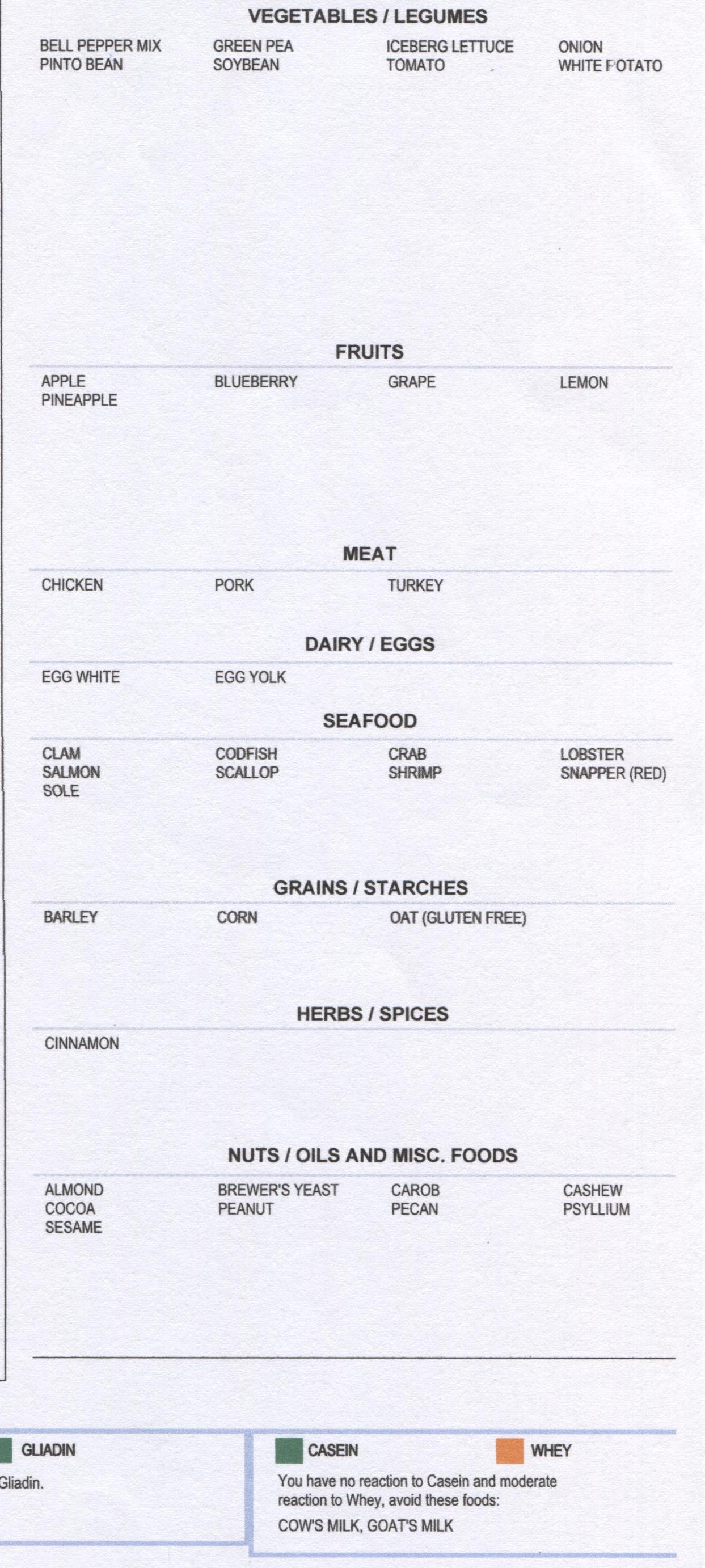 Вешала на ФБ, хотела сюда тоже. Вдруг кому-то пригодится. Протестировалась на food sensitivities. Пришли результаты. ((( Я знала, что у меня реакция на некоторые продукты, но не подозревала, что на столько. Прописан многоступенчатый дитокс, который в общем будет длиться около 6 месяцев (там некоторые продукты вводятся по кусочку через 3 месяца, некоторые через 4, остальные через 6 месяцев или, скорее всего, никогда зухе есть не смогу).