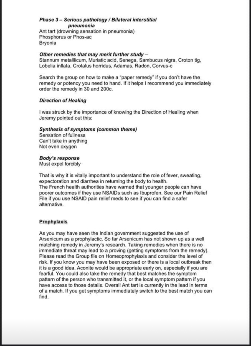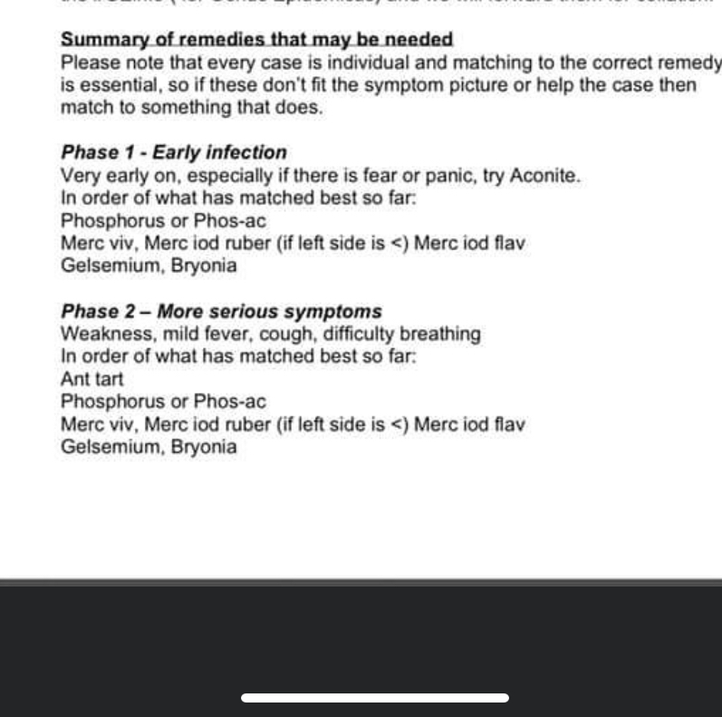 Мои гомеопатические лекарства уже в дороге, жду) Я не слышала про такое средство. А какое у него гомеопатические название? Наверное написано там где ингредиенты. Я хочу поделиться историей с ФБ. Оказывается, Короной можно болеть больше месяца, с легкими симптомами, и не выздоравливать! Мужик в этой истории сначала принимал Gelsemium, вроде помогало, но не до конца. Так у меня то ведь то же самое! И я тоже принимала Gelsemium, вроде было лучше, но до конца так и не проходило. Постоянно ощущение что у тебя stomach flu, stomach is on the edge, живот того и гляди заболит. Все это слегка, голова немного congested, вроде все не страшно, но ведь не проходит! У меня сейчас два гомеопата и оба useless! Я сама по симптомам определила, что у меня все симптомы Phophoric Acid. Вчера наконец то получила его по почте, сразу приняла, сегодня утром уже значительно лучше. С утра приняла второй раз, сейчас уже почти нормально. Буду принимать пока полностью все симптомы не пройдут. Этот мужик в истории ниже чуть не умер! И это после почти двух месяцев вялотекущих симптомов. Девочки, будьте очень внимательны к своим симптомам. Этот вирус очень коварный и иногда протекает совсем незаметно, пока не станет поздно! l I thought I would add my experience to this thread in case it helps some practitioners: I have carona virus. I’ve been struggling with it intensely for 10 days, but if I look back, I must have been infected in late January. I have been treated by a fine homeopath. At first she treated with Gelsemium. It helped for nearly a month to keep what I thought was just the flu at bay...but 10 days ago it ceased working and I had a sudden chest tightness and breathing issues and high temperatures every evening...during a crisis moment she prescribed Carbo Vegetalis to open my lungs quickly. It worked and saved me that night. The next day, she started a protocol of Antimonium Tart. It was slow to work at first, but after repeated 200c doses, I can now say I no longer have nightly fevers and I can breathe pretty much freely again. I’m sharing in case this experience helps others. I’m staying in quarantine for another 14 days. I’m so grateful for homeopathy!
