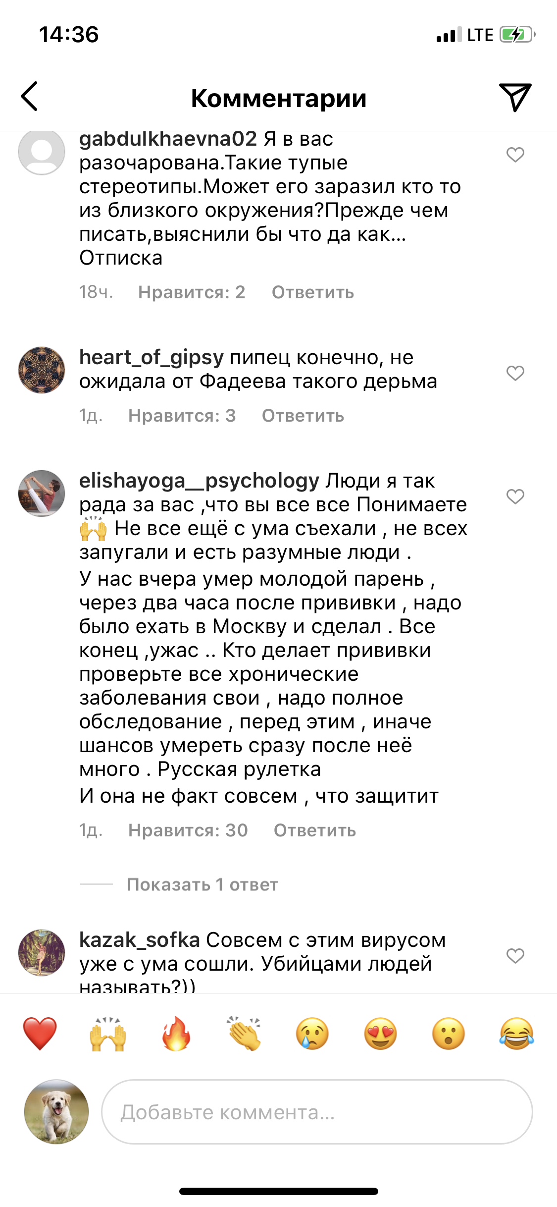 Права Казарновская , сломают они зубы об Россию . Америка уже давно дыра , а люди зомби . Только в Рф думающее население , а не послушные овцы. Радует что под пропагандистским тупым постом Фадеева 5000+ отрицательных комментариев . https://www.instagram.com/p/CRXJJjyriSp/?utm_medium=copy_link