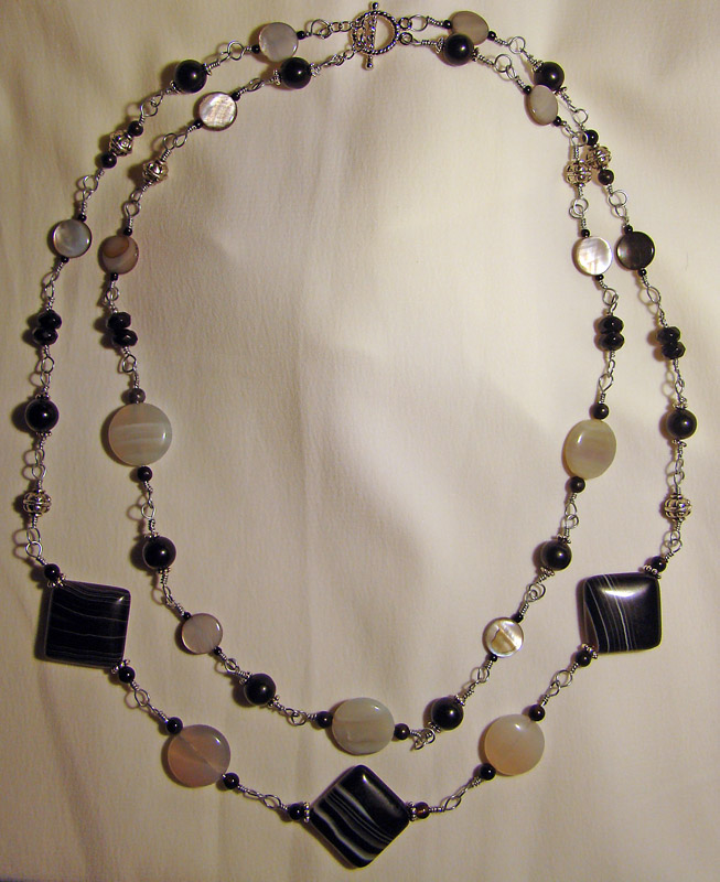 Какие все рукодельницы! Все-таки тут больше возможностей для любого хобби, можно купить материалы и инструменты какие надо и без проблем. Я тоже занялась бусами, очень давно хотела и собиралась долго, вот наконец собралась. Это мои первые работы: браслет из авантюрина и колье из черного оникса, агата, черной яшмы.