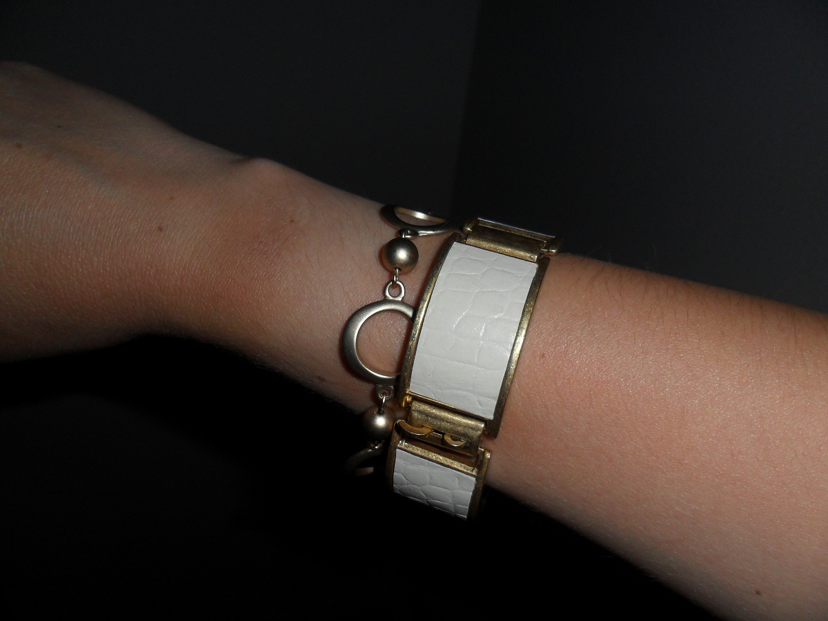А вот все мои браслеты. Больше двух не получается пока вместе соединить. Надо еще покупать. Они еще и тяжелые, неудобные, болтаются на руке! Мне нравятся браслеты J.Crew