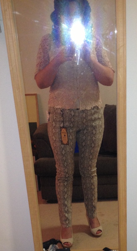 Штанишки-стреч. Сперва думала - пижамная расцветка. Пригляделась - вроде как питон... Нравятся, но не знаю, с чем носить...