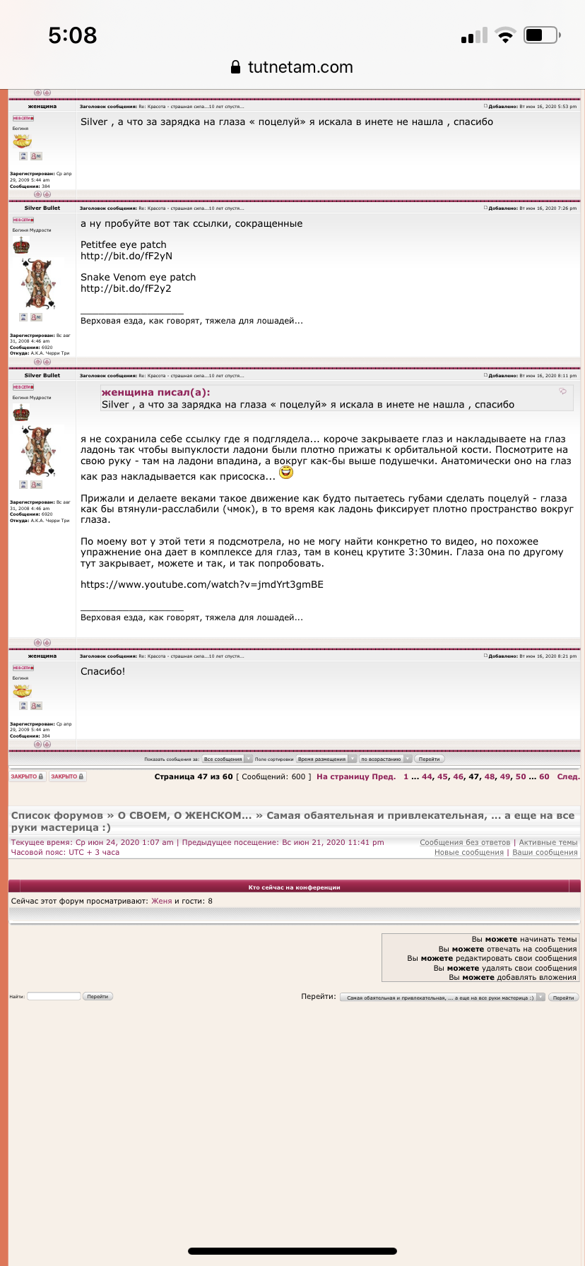 Silver Bullet писал(а): Видео еще раз - здесь. Мужик показывает как клеить везде, но я клею только три вертикальные полоски на лоб, одеваю козырек и все. Я просто ленивая и ищу такие штучки, чтобы сильно не напрягаться. Еще есть куча упражнений для лба, но их делать надо.[/color] https://www.youtube.com/watch?v=qOw92u8XpZY