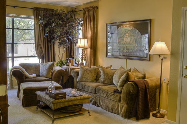 Имхо, я много вижу этот цвет на стенах, очень благородно смотрится с ним темнокоричневое дерево и похожего цвета шторы. Плюс видела сочетание этого цвета с темно-тмно бордовым, тоже красиво. И антикварные всякие штуки. Мебель черную сложно преставить. А что именно?