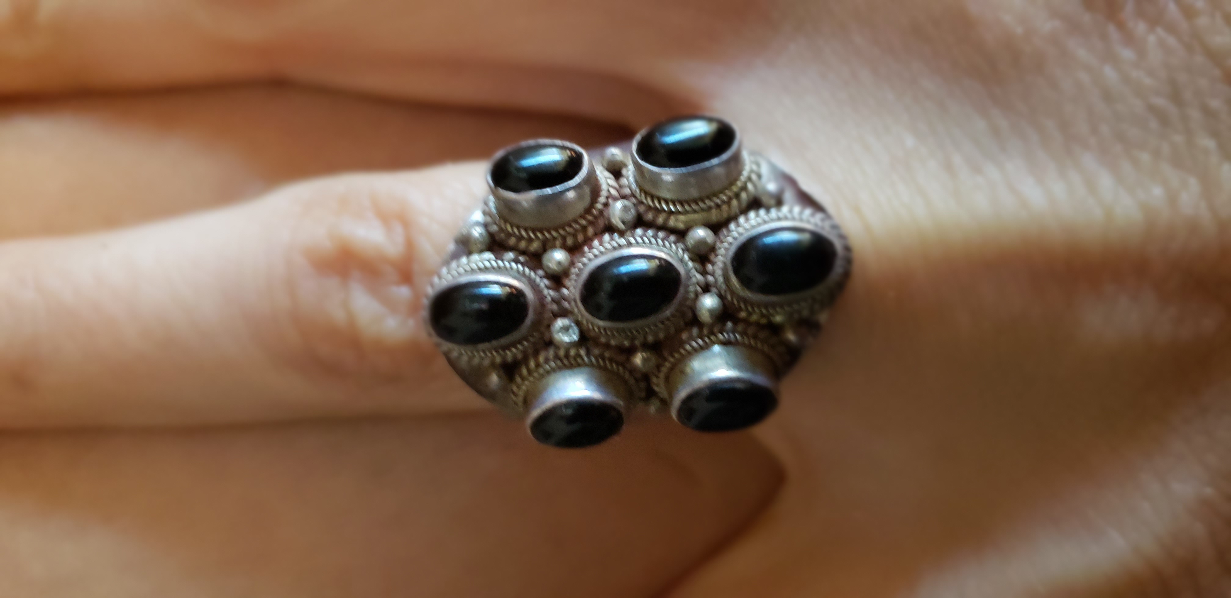 Also, got this piece in a small hole in the wall Buddha shop in Kona. Pure silver and black onix. Handmade. Guess, Major is right - there is a hippie in me.