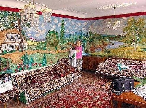 как давно я сюда не заглядывала. Это вышивальщицам Цитата: Бабушка Мария Радейко сама вышила крестиком себе обои. В голове не укладывается сколько усердия затрачено не говоря уж о времени и материалах.