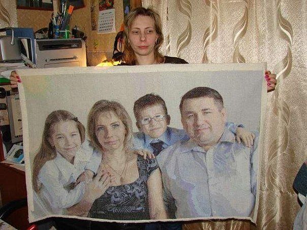 я надеюсь я не засоряю тему, а типа толкаю идеи. Дева вышила портрет семьи (где-то в одноклассниках увидела). Хорошо, что сейчас программы высчитывают схему, а я помню времена когда мы расчерчиваоли фото и вышивали, я что-то попроще, а мама вышила икону, смотря на нее, без схемы, на нынешнее время не идеально, но очень замечательно!