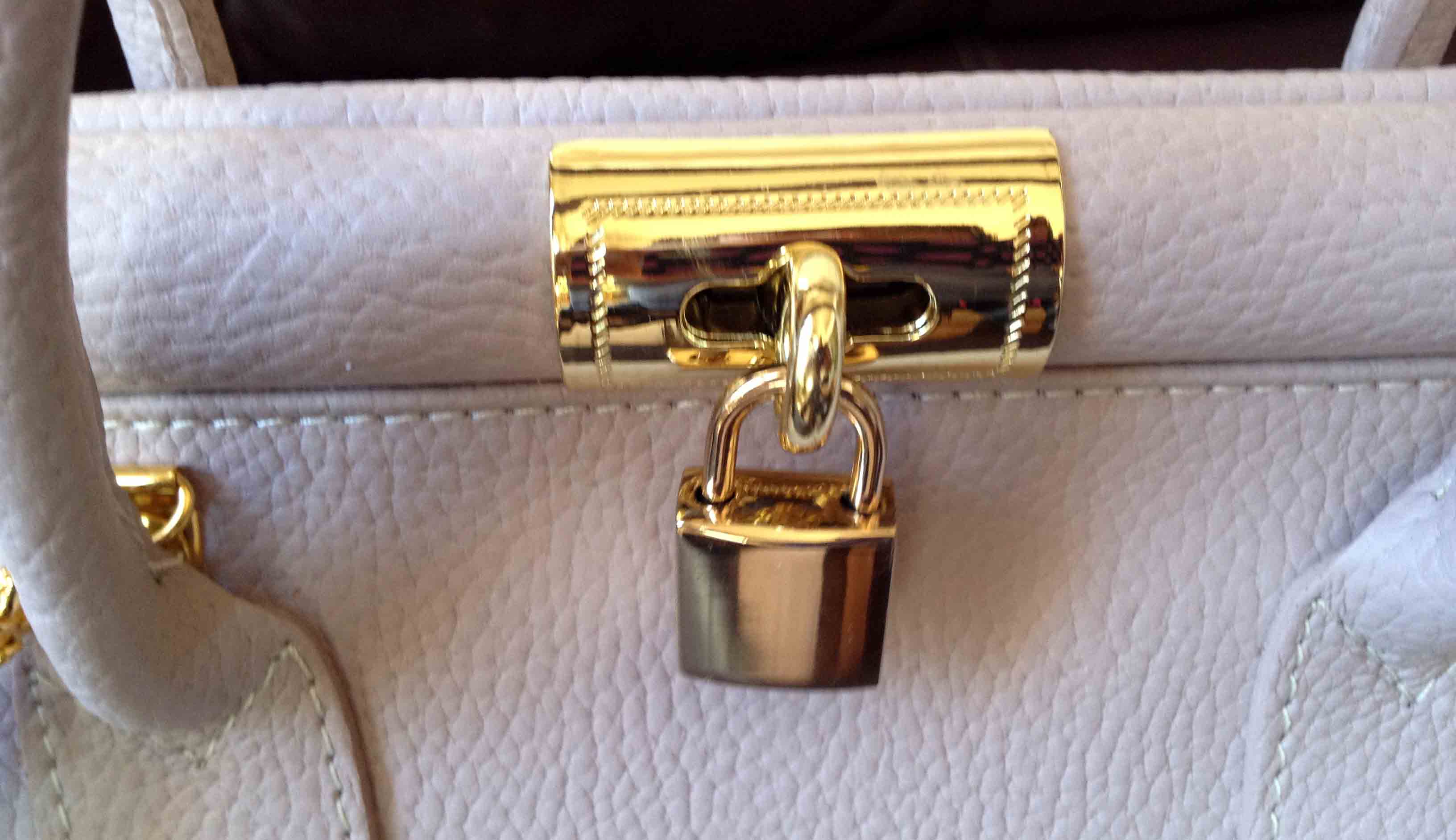 Цвет можно назвать явно розовым условно. Он какой-то очень светло-лиловый либо грязно-розовый. По цвету подходит мне под разные вещи в гардеробе. iPad войдет и доки, еще и замочек с маленьким золотым ключиком имеется. Короче, мой любимый цвет, мой любимый размер.