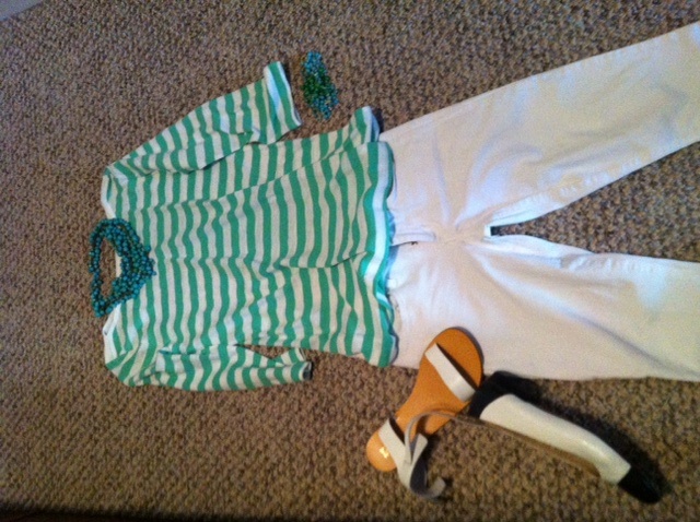 Вторая матроска с джинсами мне не нравится. Для нарядного лука на выходные ee надо с белыми брюками и украшений туда добавить или платочек - тогда получится эдакий resort style