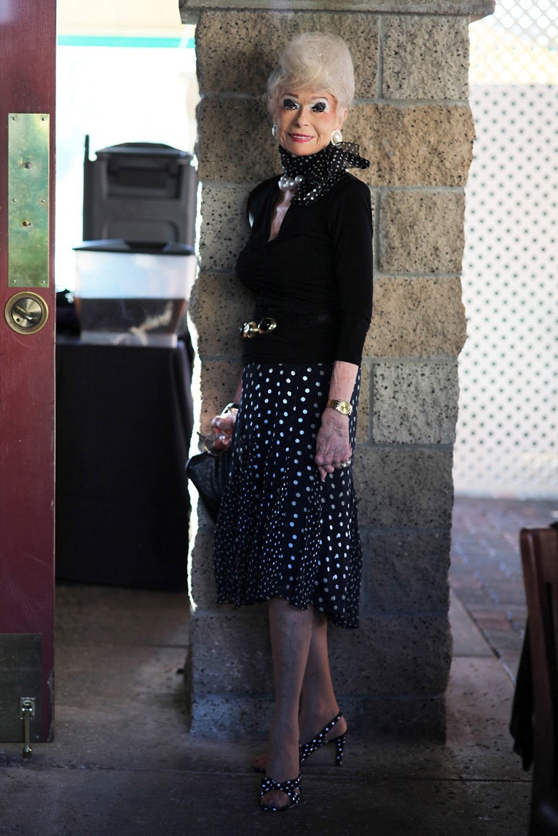 Вот как "бабушка" приоделась в горошек...как вам, особенно макияж http://advancedstyle.blogspot.com/ судя по этому наряду я спокойно свои туфли под платье могу надевать
