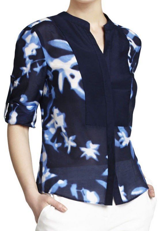 Классно смотрится блузка,но модель видно что высокая очень. Если невысокий рост, наверное надо петит. Цвет - прелесть  . Прямо к моей сумке ботанической