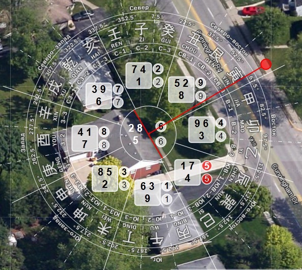 Итак - как же этот чертов дом расчертить??? Во первых надо точно знать в какую сторону света смотрит фасад (или тыл, или бок - неважно). Нам нужна точка отсчета. У кого есть компас\лопань то меряете от двери, а у кого нет, можете прикинуть по ссылке что я дала. http://mingli.ru/24-mountain.html Вот я выбрала произвольный дом в штате Вайоминг. Думала что где портик это вход, но потом присмотрелась и вижу что это какой то козырек на бэкьярде - не важно. Совместив перекладину буквы Т (красным на рисунке) с линией крыши я вижу что в данном случае тыл смотрит на Юг. Если бы я меряла фасад то был бы Север-3 соотвественно. Мне просто лень уже было картинку переделывать. Вложение: направление1.jpg Обратите внимание что Юг не чистый, а почти краешек. Если померять лопанем то вполне может быть что это уже не Юг, а Юго-Запад. Поэтому так важны измерения реальные.