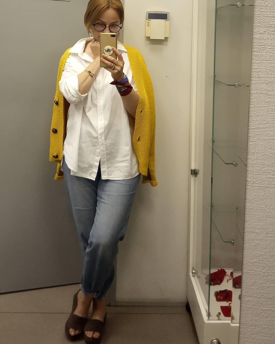 Так понравилось вешать штучки на запястье. проспала, джинсы и рубашка всегда выручат. новенький кардиган. Горчишно жёлтого цвета. Вязанный с большими пуговицами, короткий. Бабушкин вариант.