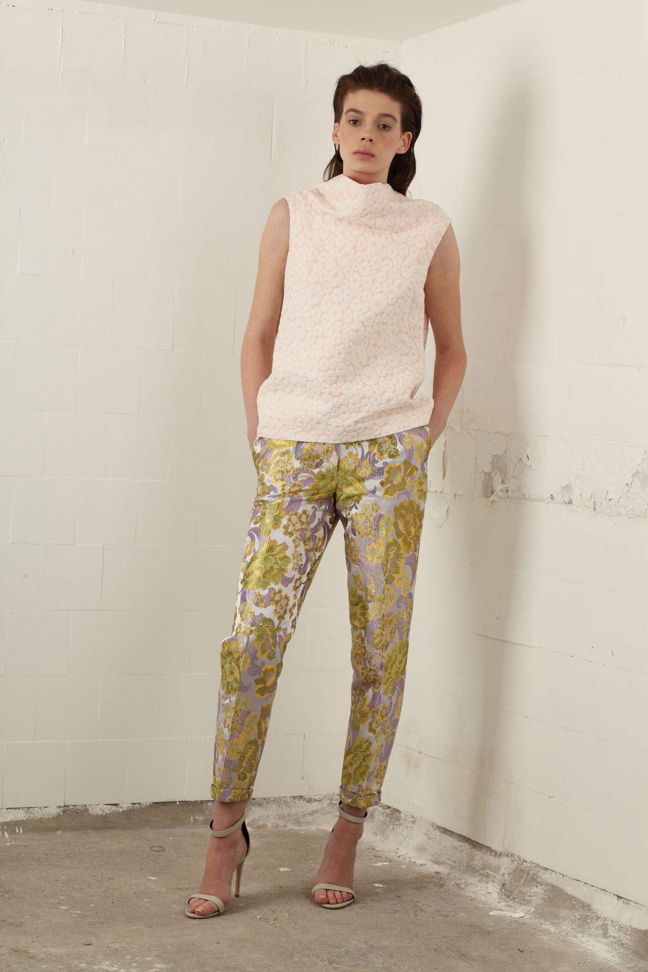 что-то похоже что тенденция не просто брючки, а целые костюмы в цветочек! мне нра! не надо голову ломать - чего с верху одеть!