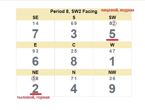 Сперва находим водную звезду лицевого дворца и горную звезду тылового дворца. Это самые важные звезды, которые характеризуют феншуй дома.