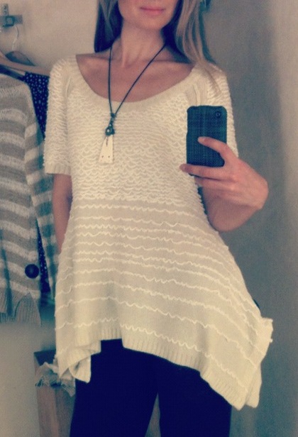 я вот такую штуку купила неделю назад, моя любимая мягкая коФточка)) SayHi, мне тоже кофточка нравится. Сумка вроде удобная. Я ее крискросс ношу за покупками грошерис туда ключи, кошель и очки входят нормально  Давно хотела себе синюю сумку. Я про пятницу тоже подумала, но она бы не дотянула, у нас тут все помешаны на Антро, сметают все на раз, даже фул прайс, не то что сейл  не у нас народ терпеливый ,как я ...я охочусь долго и методично кстати , на заметку - если вы что-то купили на рапродаже, а через неделю они цену еще резали - можно у них adjust price попросить ))) пойду завтра сумку еще раз защупаю )))) А еще Антро принимает вещи годичной давности, если с этикеткой и всю деньгу возвращают на карточку...