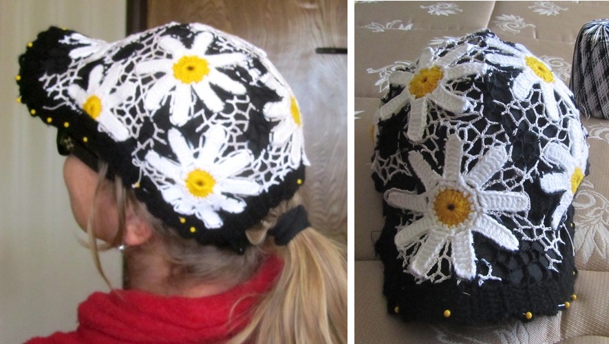 Девушки, вот заканчиваю кепо и перед последними стежками надо убедиться, какой фон самолучший. Желтый примерила - не очень. Белой бейсболки нету под руками. А так и кажется, что белый был бы лучше. Но пачкабельнее