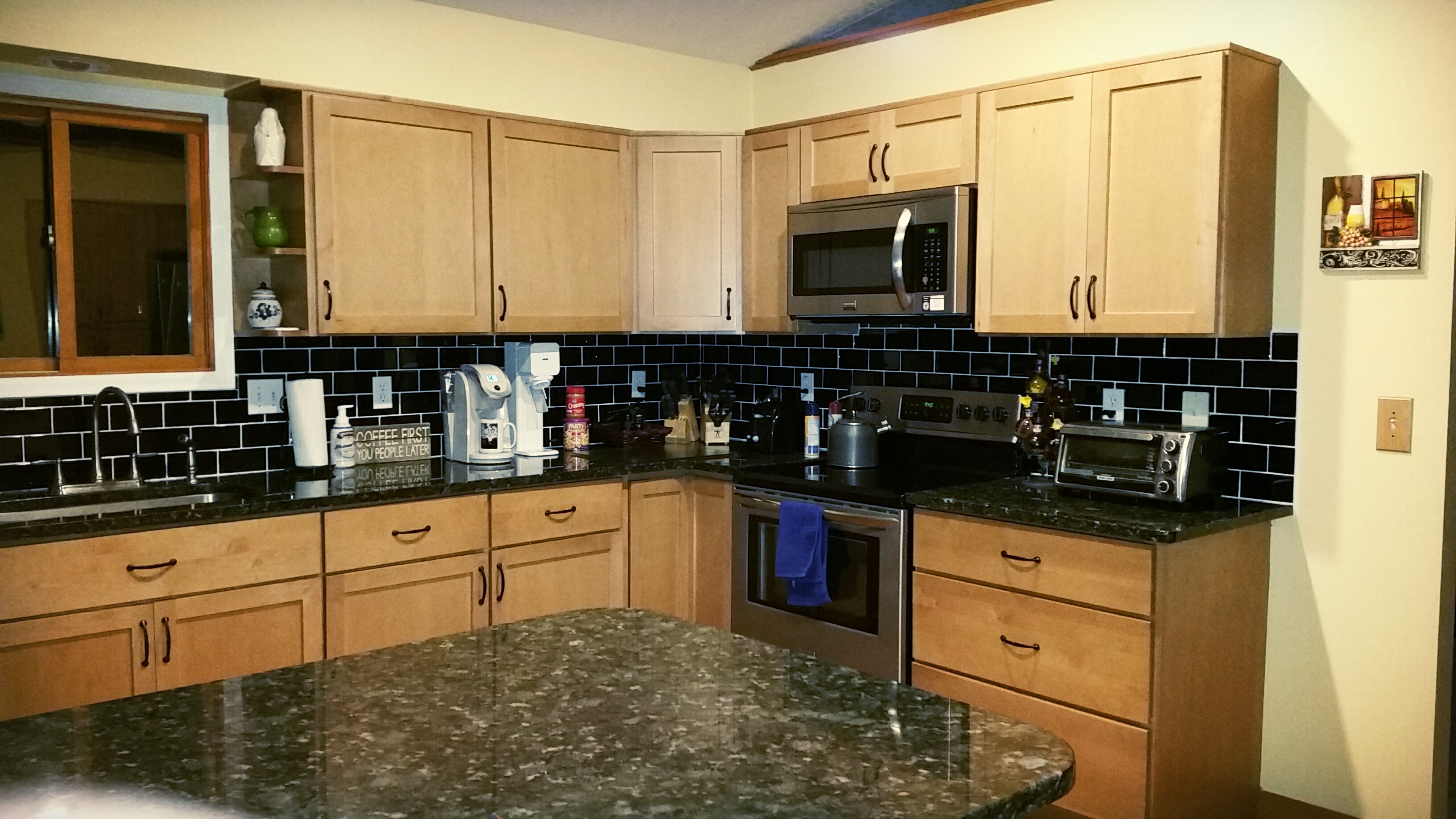 Лена, мож те стены где черная плитка в черный цвет покрасить? чтоб не так зияло? и главное ту раму на окне. Белеет как парус одинокий. Вот наш срач. Дизайн мой. Муж заказал эти черри кабинеты. Я бы сама выбрала крашенные. Но пришлось исходить из того что было - эта рыжая черри. Дизайн мой короче. Крашенное пачкается быстрее. тоже минус однако. Вот мне надо что-то среднее между твоим и тем, что у Лены (без черного) мне нравится чуть светлее дерево (во всяком случае на "верхний ярус), но тогда сложнее подобрать бэк сплэш У нас год, два чтоб собрать денег. А пока мы готовим дом для квартирантов. (Не мала баба клопота, купила порося) Тенантам шкафы крашу, все равно они их за++ут