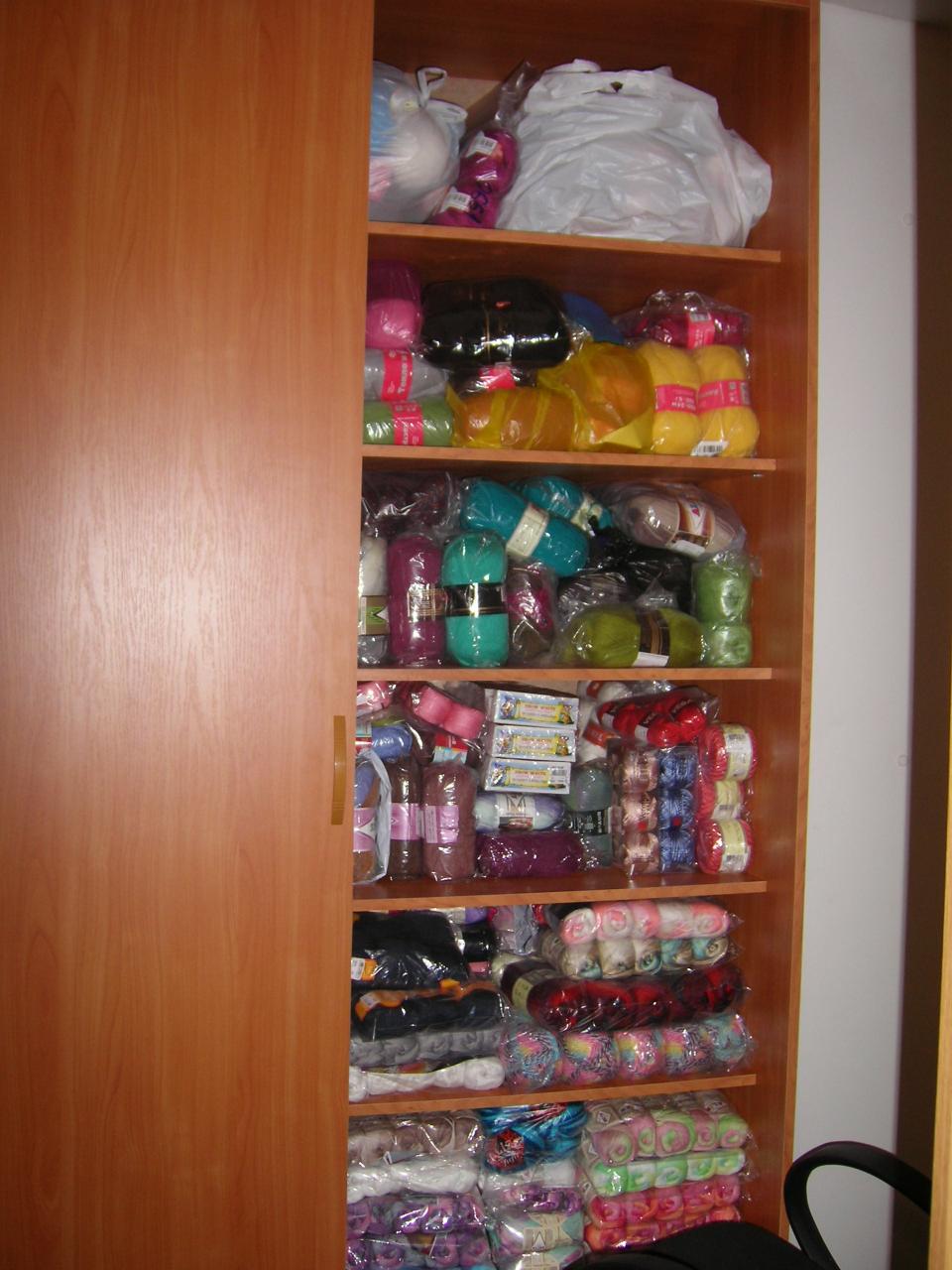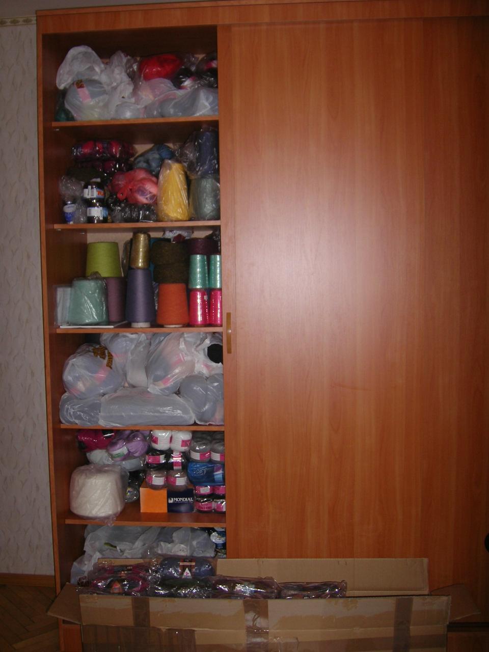 Алина75, Классно, когда есть такие запасы, как в магазине. Надумал свяать, что-нибудь, подошел к шкафу, выбрал понравившуюся пряжу. Или, подойдешь так к шкафу, откроешь, посмотришь, и родится идея что связать :) PS:Теперь я понимаю, когда вы говорите, что привезли 3 чемодана. Я то думала 3 чемодана в перемежку с вещами
