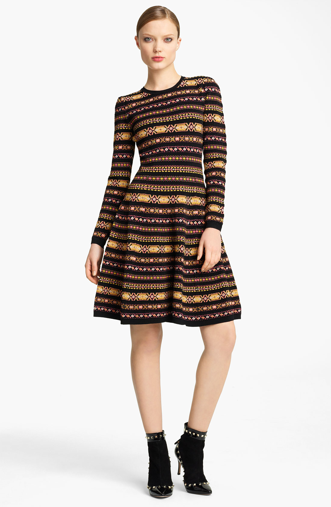 Здесь тоже наряд от Валентино, но с необычным сочетанием такого "деревенского" принта с ботинками на шпильке и отделкой в стиле рок-н-ролл