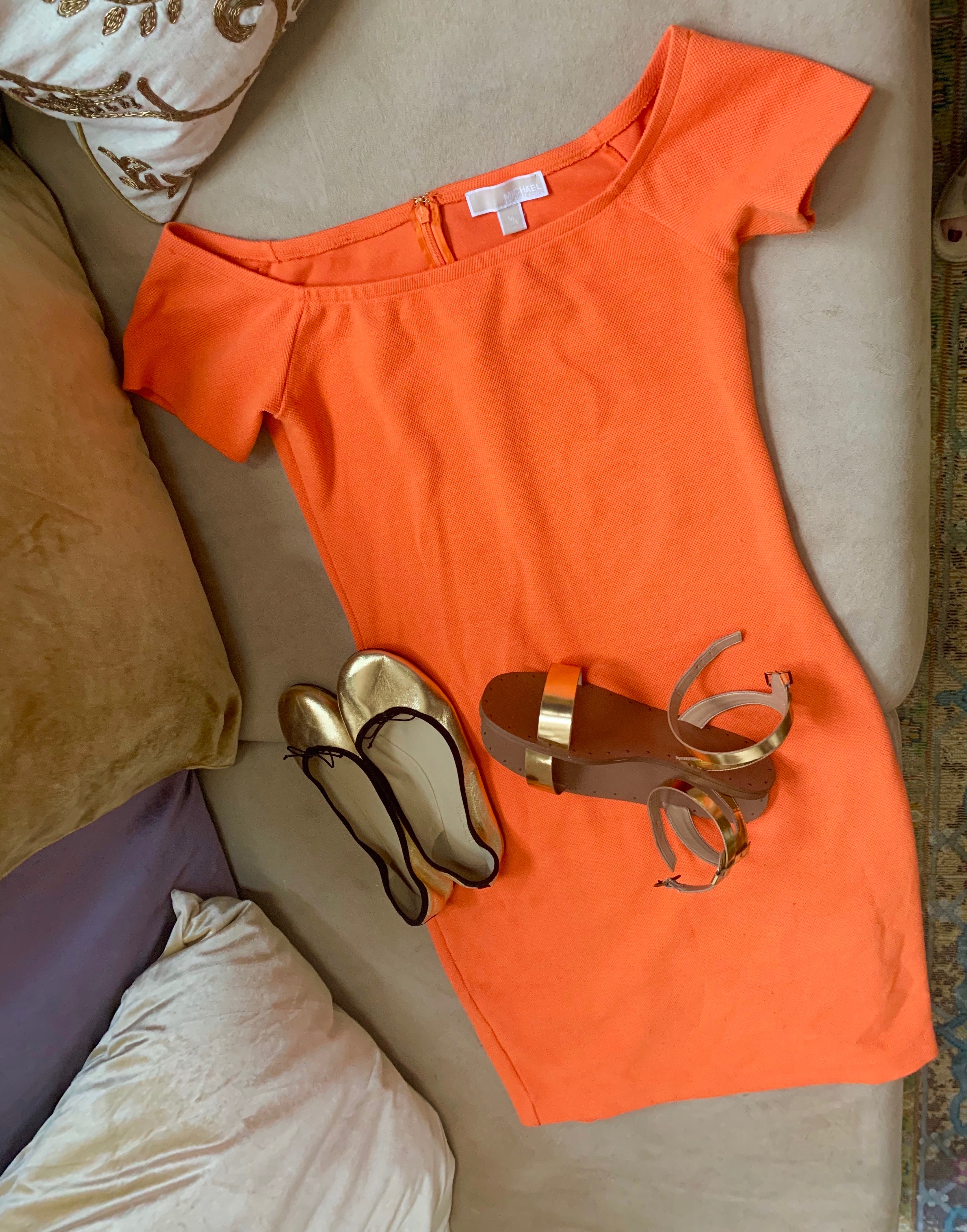 Классная сумка-утка Ооо смотрю все с этими желтыми лаптями из Зары Я только кстати купила золотые сандали, нужно найти все с золотом. Вот золотые сандали с корсовским платьем. Вот только те балетки не знаю с чем носить?