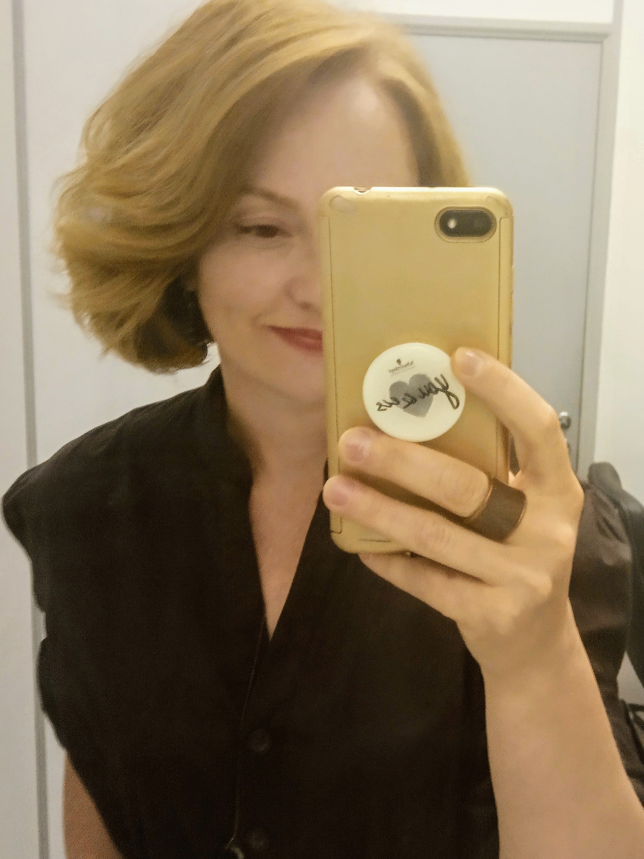 Нового вообще совсем ничего не покупала. Ношу белую футболку и рубашки не снимая. И джинсы.все Если жарко совсем платья халаты. Волосы отрастают  . Уже хвостик могу делать. Не укладываю, мою сами сохнут, а если укладывать шапка получается. Тут попробовала не нравится, слишком пышно. А без укладки естественно вьются и не так пышно