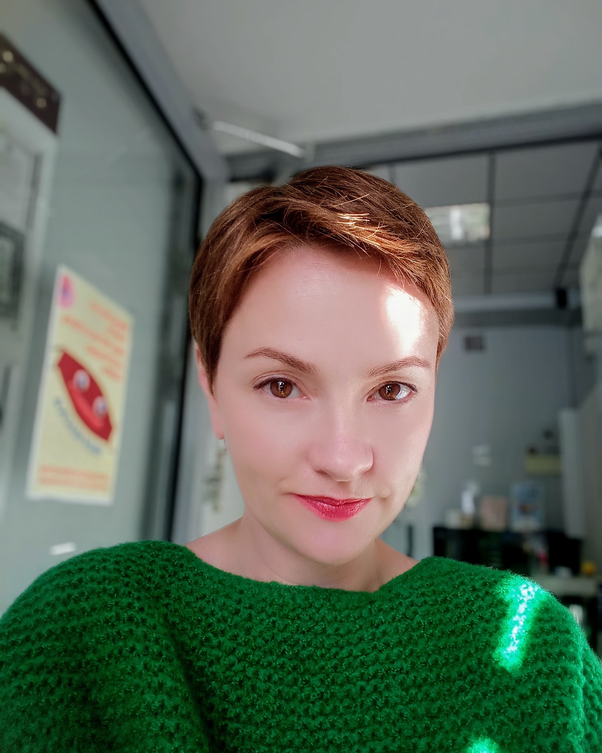 Форгетик, всё отлично! Стрижка прелесть и цвет волос, как раз под зеленую гамму одежды