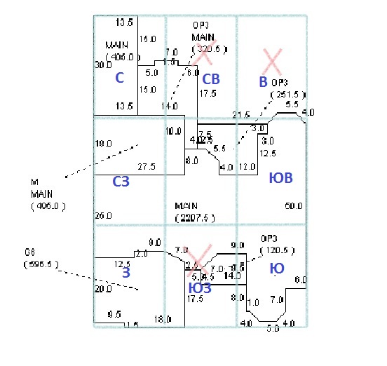 Sweet Melissa писал(а): Пуля, вот и я наконеч чет сообразила  . Букву Т если по крыше выравнивать, то получается неточно, разница с компасом где-то градусов 10 выходит, так что я направление поставила по компасу. Но тут опять же заморочка, меряю на том уровне, что ты сказала, но все равно компас разные данные дает если мерять в полторах метрах от двери или в двух например. На несколько градусов всего, но получается критично, потому что там как раз граница проходит между ЮЗ1 и ЮЗ2 и получается то прямо по границе показывает, то пару градусов туда или сюда  Да все правильно. Берем данные только те что на двери. Те что меряем на расстоянии от дома для дворцов не используем. Расхождения - это нормально. То что на границах двух гор мы потом рассмотрим. Для дворцов главное сейчас просто стороны света определить чтоб знать точно где какой дворец. В данном случае направление хоть и на границе двух гор, но внутри дворца. Если даже туда-сюда сместить стрелку, то лицевой дворец все равно останется ЮЗ. Сетка наложена правильно. Нет дворцов Восток и Северо-Восток.