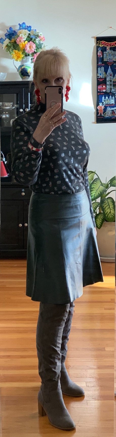Сегодня был утренник в университете. Назывался Christmas social, но по сути был утренник. В 2016, устроили вечер, народ даже пришёл в платьях (я в том числе), но многие аспиранты не появились - нет ничего нарядного у людей. С тех пор, устраивают утренники, где большинство в джинсах и телогрейках, серых и чёрных. Я надела ugly Xmas sweater. В прошлом году у меня был "Santa, I can explain..." свитер. (Было за что объясняться.  ) Но в этом году я была пай-девочкой целый год, так что заслужила белых полярных мишек. Общая картина серая, мне захотелось хоть чего-то рождественского, так что добавила чуть-чуть красного...